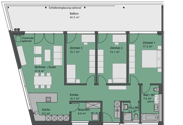 Der Doppeleinstellhallenplatz Nr. 28+28a kann für CHF 55'000.00 dazu erworben werden. Ein eigenes grosszügiges Kellerabteil mit Waschbecken und Stromanschluss gehört zur Wohnung dazu. Ihren Waschturm schliessen Sie im hierfür errichteten Reduit innerhalb der Wohnung bequem an.